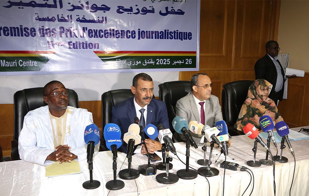 أقيم اليوم الجمعة 26 دجمبر 2025 بنواكشوط، حفل توزيع جوائز النسخة الخامسة من مسابقة التميز الصحفي ، التي تنظمها اللجنة المكلفة بتسيير وتوزيع صندوق الدعم العمومي لوسائل الاتصال.